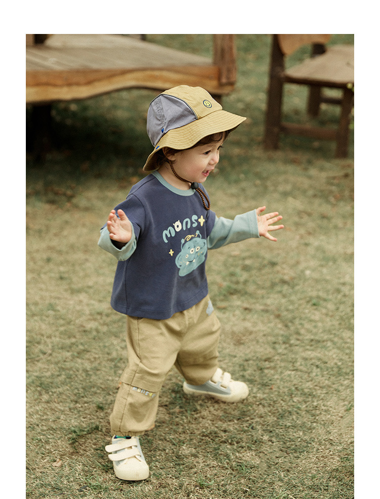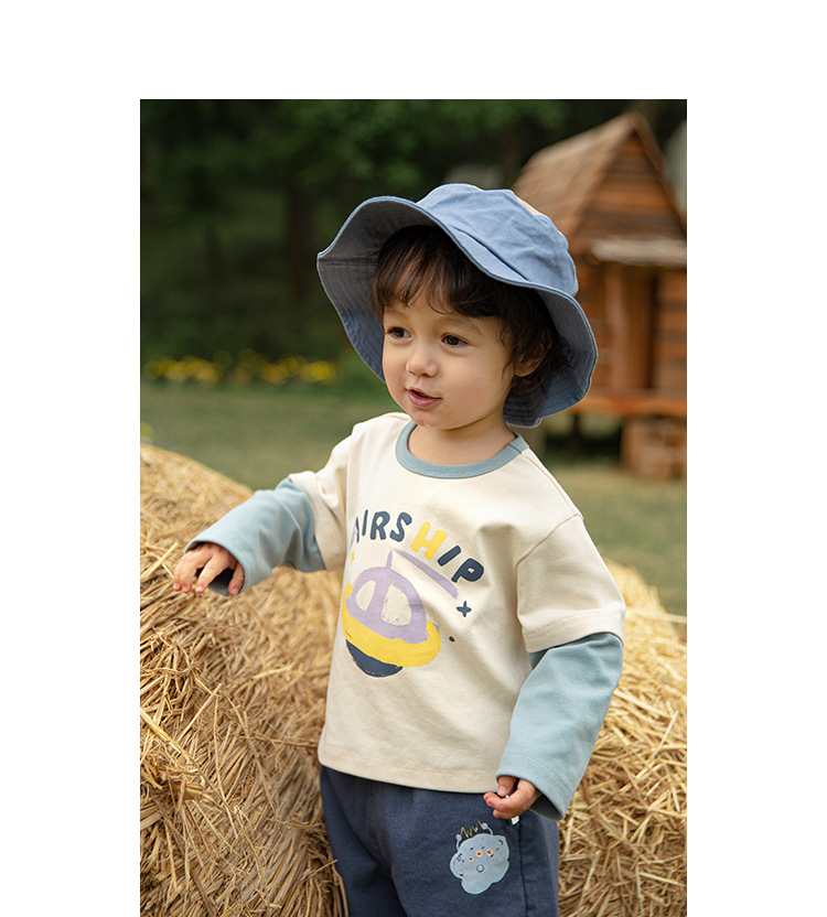 - Children's Fake Two-Piece Long Sleeve Interior Colorblock Printed Top