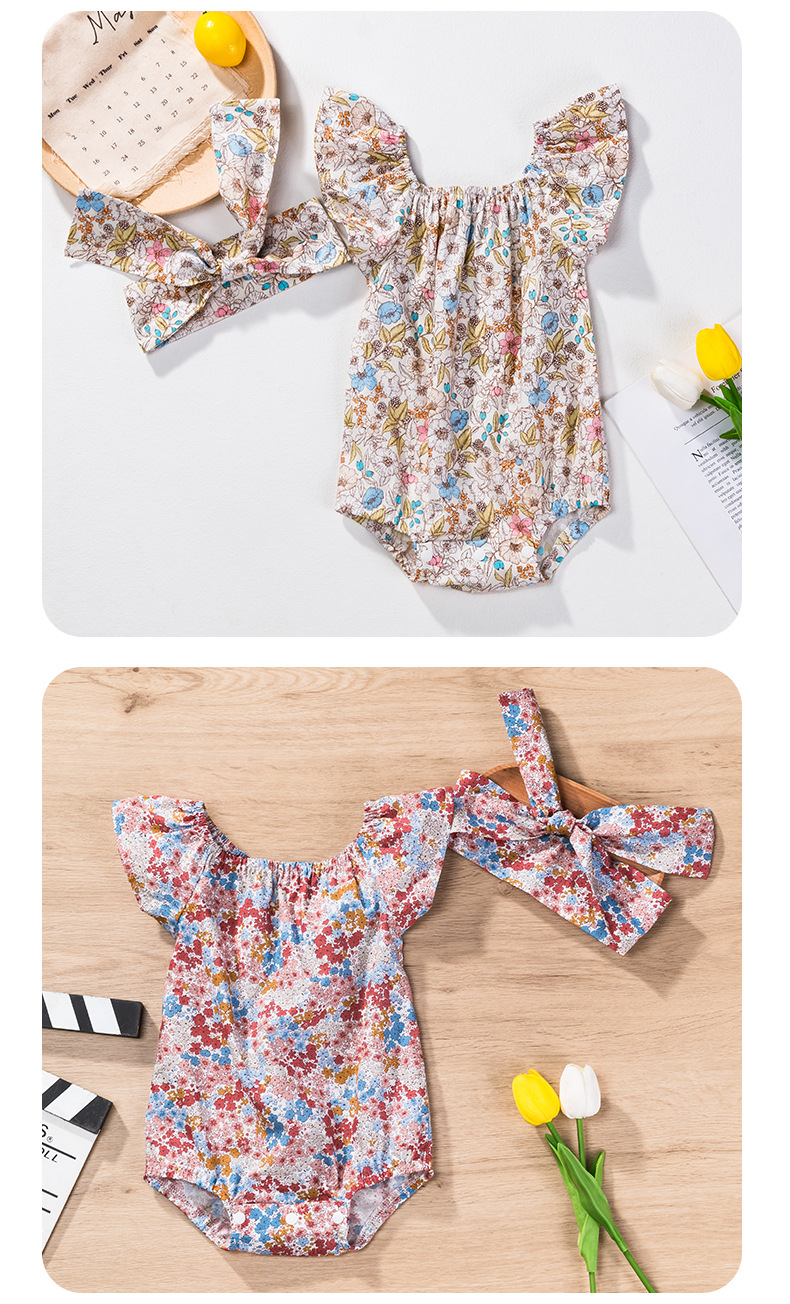 Baby Fly SLEEVE BODYSUIT Thin Newborn Floral Cotton Hair Accessories S – Peekabu