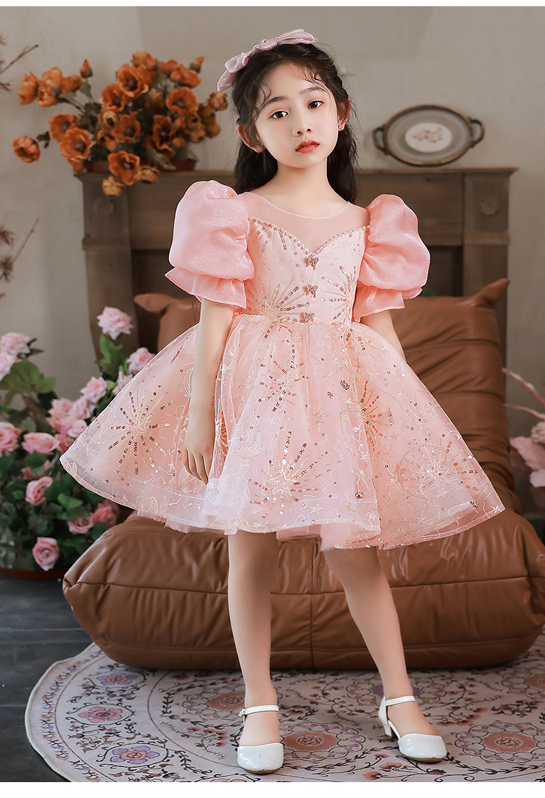 Girl's Embroidered Sequin Dress Little Girl's Pengpeng Flower Girl Wed – Peekabu