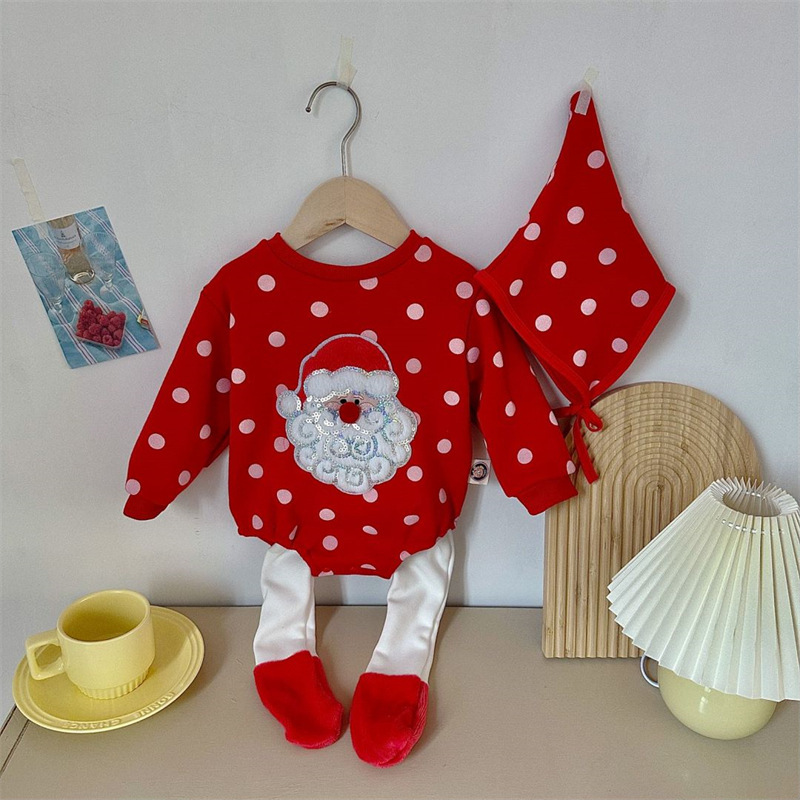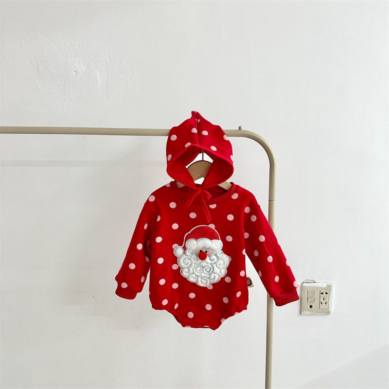 - Baby climbing clothes baby cute Spring Festival Christmas plus velvet jumpsuit New Year snowman love climbing clothes send hat