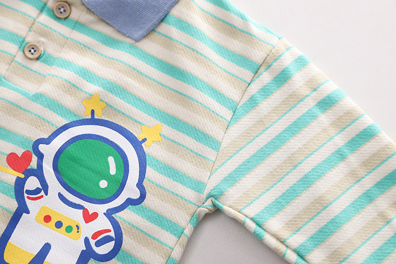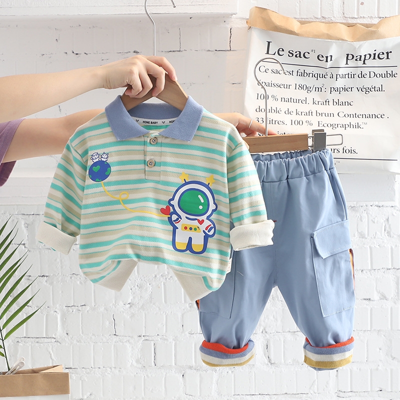 - Astronaut Lapel Striped Long Sleeve Suit Boy's Baby Casual Pants Two-piece Set